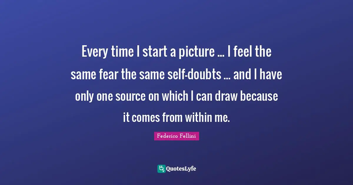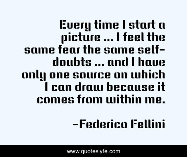 This page presents the quote "Every time I start a picture ... I feel the same fear the same self-doubts ... and I have only one source on which I can draw because it comes from within me.". Author of this quote is Federico Fellini. This quote is about self, reliance,.