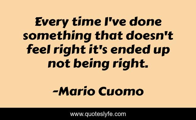 This page presents the quote "Every time I've done something that doesn't feel right it's ended up not being right.". Author of this quote is Mario Cuomo. .
