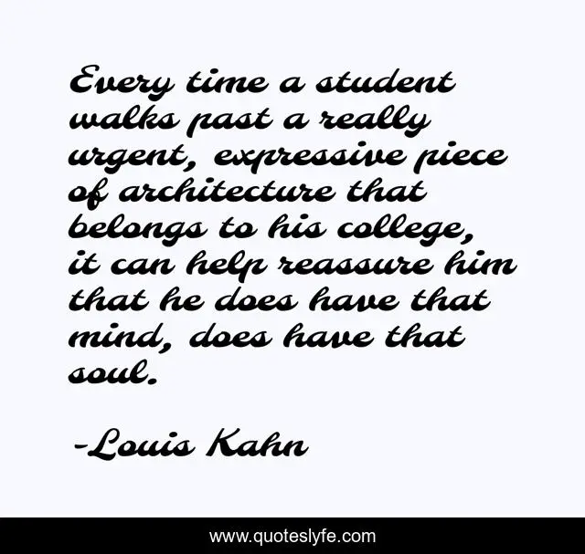 "Louis Kahn Quotes." Quoteslyfe.com, 2025. Mon. 08 Dec. 2025. <https://www.quoteslyfe.com/quote/Every-time-a-student-walks-past-a-299370>.