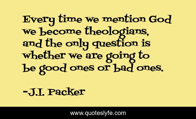 This page presents the quote "Every time we mention God we become theologians, and the only question is whether we are going to be good ones or bad ones.". Author of this quote is J.I. Packer. This quote is about christian-faith, bible, god, theology, christianity, theologians,.