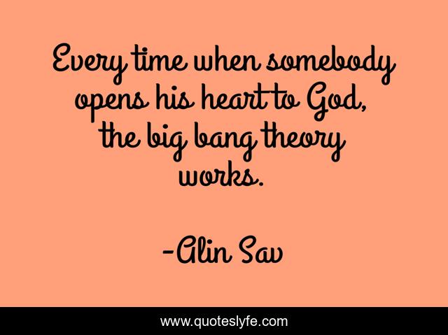 This page presents the quote "Every time when somebody opens his heart to God, the big bang theory works.". Author of this quote is Alin Sav. .