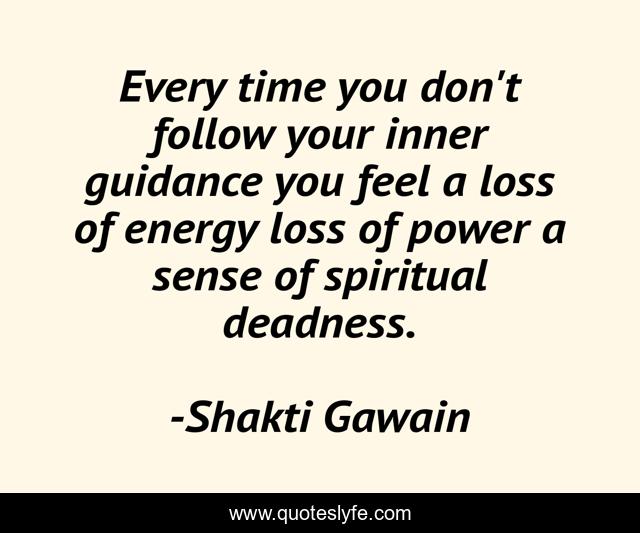 This page presents the quote "Every time you don't follow your inner guidance you feel a loss of energy loss of power a sense of spiritual deadness.". Author of this quote is Shakti Gawain. .