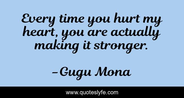 This page presents the quote "Every time you hurt my heart, you are actually making it stronger.". Author of this quote is Gugu Mona. This quote is about heart, stronger, hurt,.