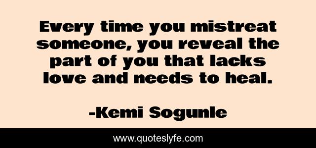 "Kemi Sogunle Quotes." Quoteslyfe.com, 2025. Mon. 08 Dec. 2025. <https://www.quoteslyfe.com/quote/Every-time-you-mistreat-someone-you-reveal-93728>.