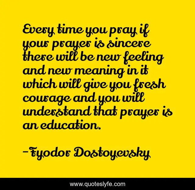 This page presents the quote "Every time you pray if your prayer is sincere there will be new feeling and new meaning in it which will give you fresh courage and you will understand that prayer is an education.". Author of this quote is Fyodor Dostoyevsky. .