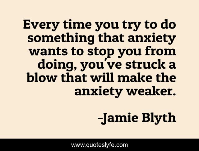 This page presents the quote "Every time you try to do something that anxiety wants to stop you from doing, you've struck a blow that will make the anxiety weaker.". Author of this quote is Jamie Blyth. .