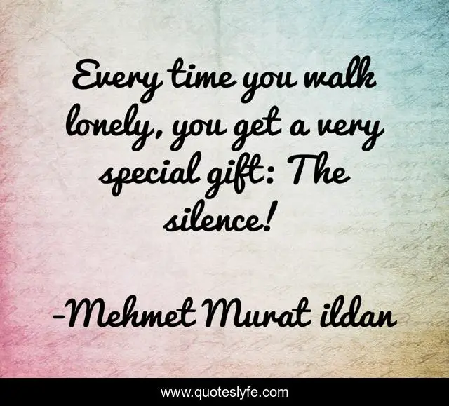 This page presents the quote "Every time you walk lonely, you get a very special gift: The silence!". Author of this quote is Mehmet Murat ildan. .