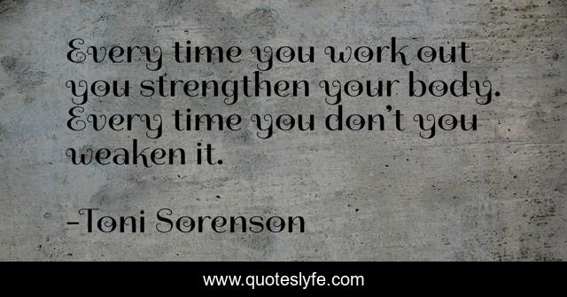 This page presents the quote "Every time you work out you strengthen your body. Every time you don’t you weaken it.". Author of this quote is Toni Sorenson. This quote is about health, exercise, fitness,.