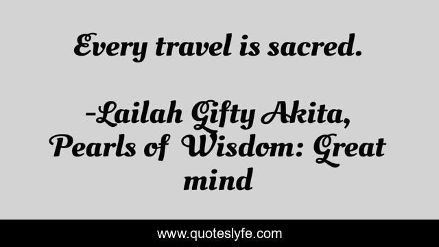 "Lailah Gifty Akita, Pearls of Wisdom: Great mind Quotes." Quoteslyfe.com, 2025. Sun. 07 Dec. 2025. <https://www.quoteslyfe.com/quote/Every-travel-is-sacred-137201>.