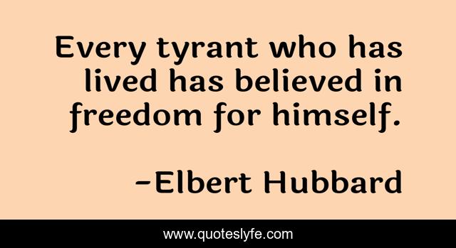 This page presents the quote "Every tyrant who has lived has believed in freedom for himself.". Author of this quote is Elbert Hubbard. This quote is about lived, tyrant,.