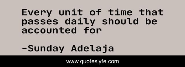 This page presents the quote "Every unit of time that passes daily should be accounted for". Author of this quote is Sunday Adelaja. This quote is about life, blessing, finance, money, work, time-management, job, joblessness, purpose,.