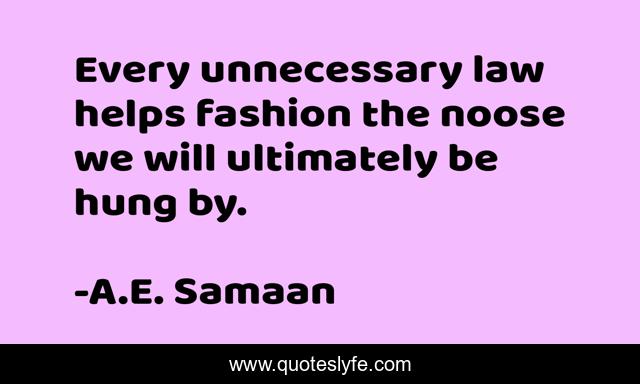 "A.E. Samaan Quotes." Quoteslyfe.com, 2025. Mon. 08 Dec. 2025. <https://www.quoteslyfe.com/quote/Every-unnecessary-law-helps-fashion-the-noose-55106>.
