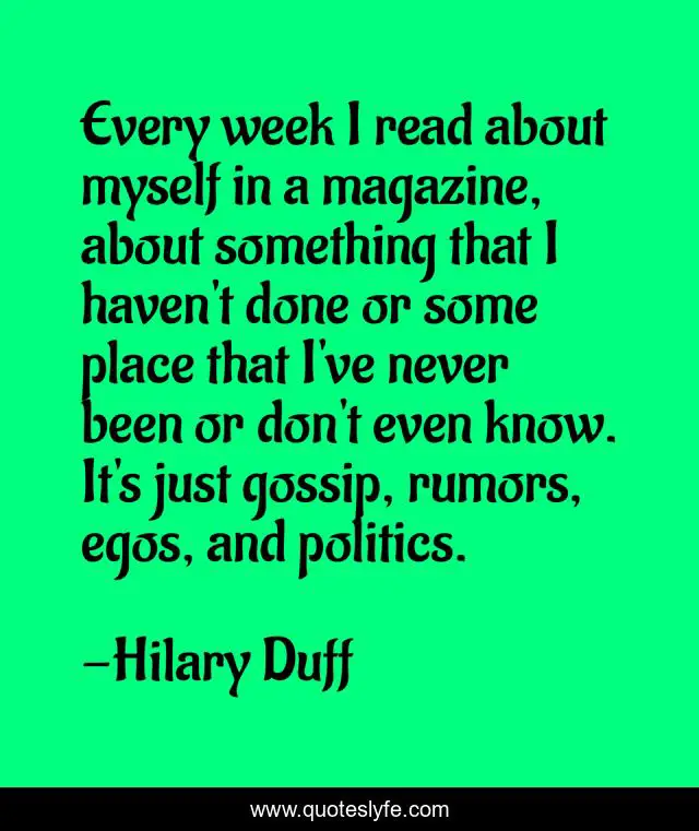 "Hilary Duff Quotes." Quoteslyfe.com, 2025. Fri. 05 Dec. 2025. <https://www.quoteslyfe.com/quote/Every-week-I-read-about-myself-in-318582>.