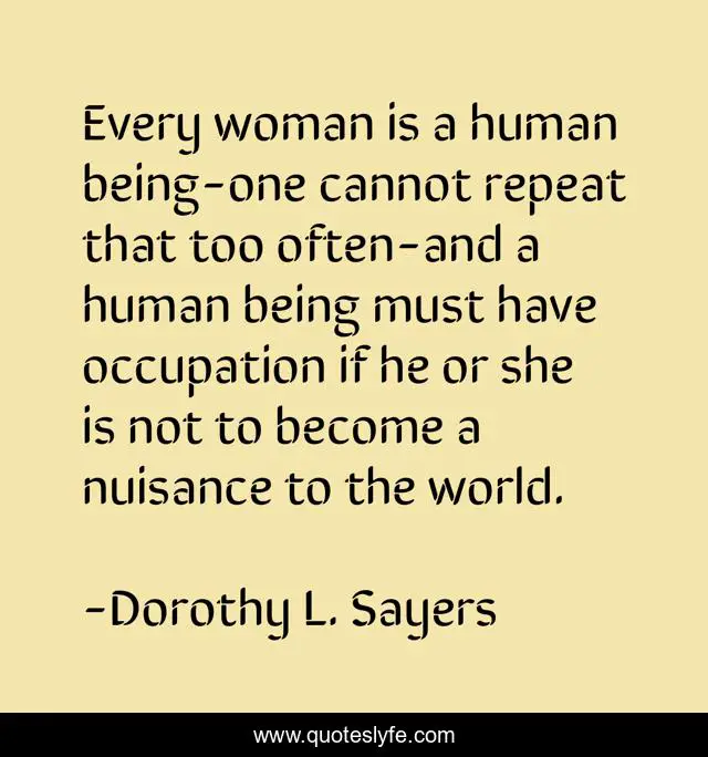 This page presents the quote "Every woman is a human being-one cannot repeat that too often-and a human being must have occupation if he or she is not to become a nuisance to the world.". Author of this quote is Dorothy L. Sayers. .