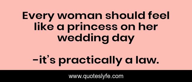 This page presents the quote "Every woman should feel like a princess on her wedding day". Author of this quote is it’s practically a law.. This quote is about don't tell the groom, anna bell,.