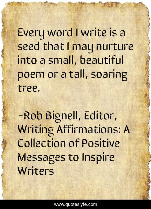 "Rob Bignell, Editor, Writing Affirmations: A Collection of Positive Messages to Inspire Writers Quotes." Quoteslyfe.com, 2025. Sun. 07 Dec. 2025. <https://www.quoteslyfe.com/quote/Every-word-I-write-is-a-seed-151163>.