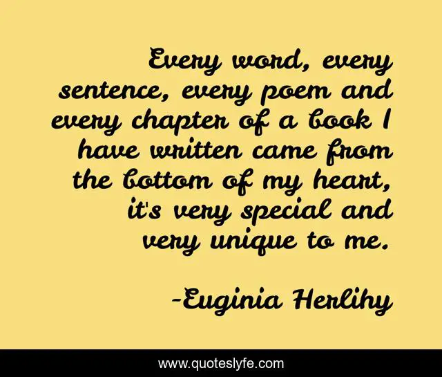 This page presents the quote "Every word, every sentence, every poem and every chapter of a book I have written came from the bottom of my heart, it's very special and very unique to me.". Author of this quote is Euginia Herlihy. .