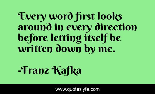 This page presents the quote "Every word first looks around in every direction before letting itself be written down by me.". Author of this quote is Franz Kafka. This quote is about language, writing,.