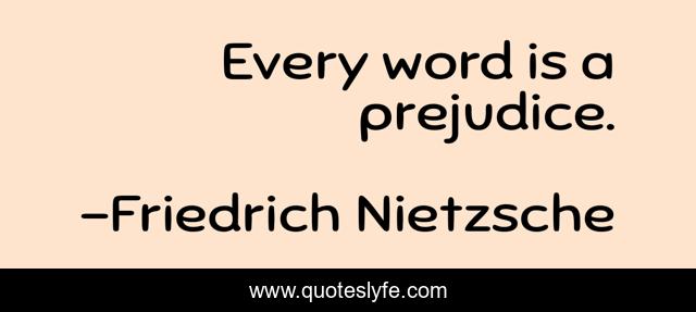 This page presents the quote "Every word is a prejudice.". Author of this quote is Friedrich Nietzsche. .