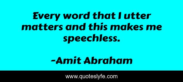 This page presents the quote "Every word that I utter matters and this makes me speechless.". Author of this quote is Amit Abraham. This quote is about speech, utterance, actions, words-of-wisdom,.