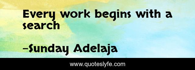 This page presents the quote "Every work begins with a search". Author of this quote is Sunday Adelaja. This quote is about begins, prosperity, search, wealth, success, money, work, riches, labor,.