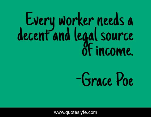This page presents the quote "Every worker needs a decent and legal source of income.". Author of this quote is Grace Poe. This quote is about source, income,.