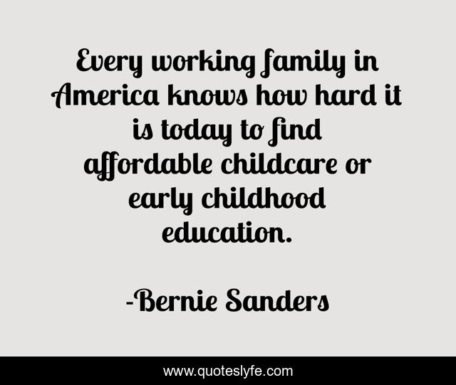 This page presents the quote "Every working family in America knows how hard it is today to find affordable childcare or early childhood education.". Author of this quote is Bernie Sanders. This quote is about family, today, childhood,.