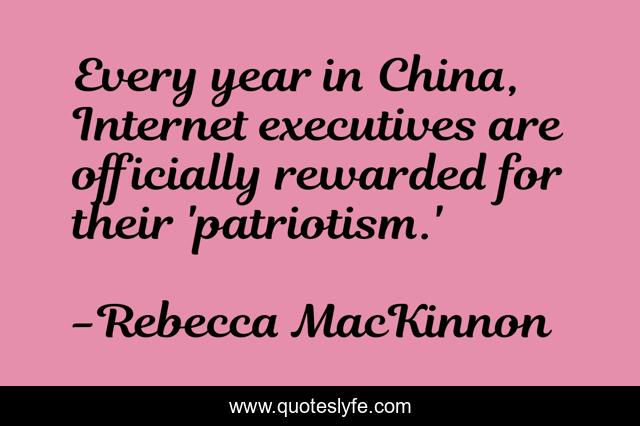 This page presents the quote "Every year in China, Internet executives are officially rewarded for their 'patriotism.'". Author of this quote is Rebecca MacKinnon. This quote is about internet, china, year,.