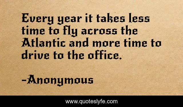 This page presents the quote "Every year it takes less time to fly across the Atlantic and more time to drive to the office.". Author of this quote is Anonymous. .