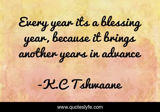 This page presents the quote "Every year its a blessing year, because it brings another years in advance". Author of this quote is K.C Tshwaane. .