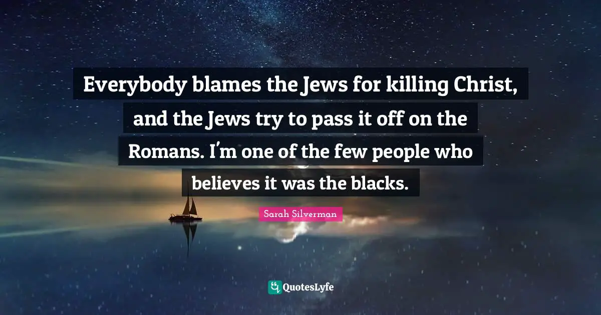 "Sarah Silverman Quotes." Quoteslyfe.com, 2025. Mon. 29 Dec. 2025. <https://www.quoteslyfe.com/quote/Everybody-blames-the-Jews-for-killing-Christ-1045331>.