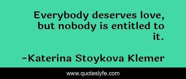 "Katerina Stoykova Klemer Quotes." Quoteslyfe.com, 2025. Sat. 06 Dec. 2025. <https://www.quoteslyfe.com/quote/Everybody-deserves-love-but-nobody-is-entitled-34852>.