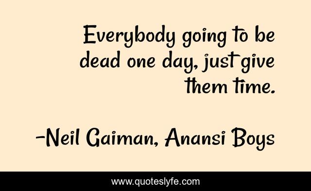 "Neil Gaiman, Anansi Boys Quotes." Quoteslyfe.com, 2025. Sun. 07 Dec. 2025. <https://www.quoteslyfe.com/quote/Everybody-going-to-be-dead-one-day-5761>.