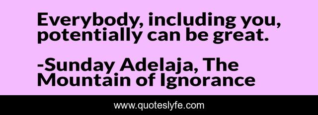 "Sunday Adelaja, The Mountain of Ignorance Quotes." Quoteslyfe.com, 2025. Sat. 06 Dec. 2025. <https://www.quoteslyfe.com/quote/Everybody-including-you-potentially-can-be-great-39411>.