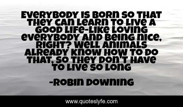 This page presents the quote "Everybody is born so that they can learn to live a good life-like loving everybody and being nice, right? Well animals already know how to do that, so they don't have to live so long". Author of this quote is Robin Downing. This quote is about animals, love, affection,.