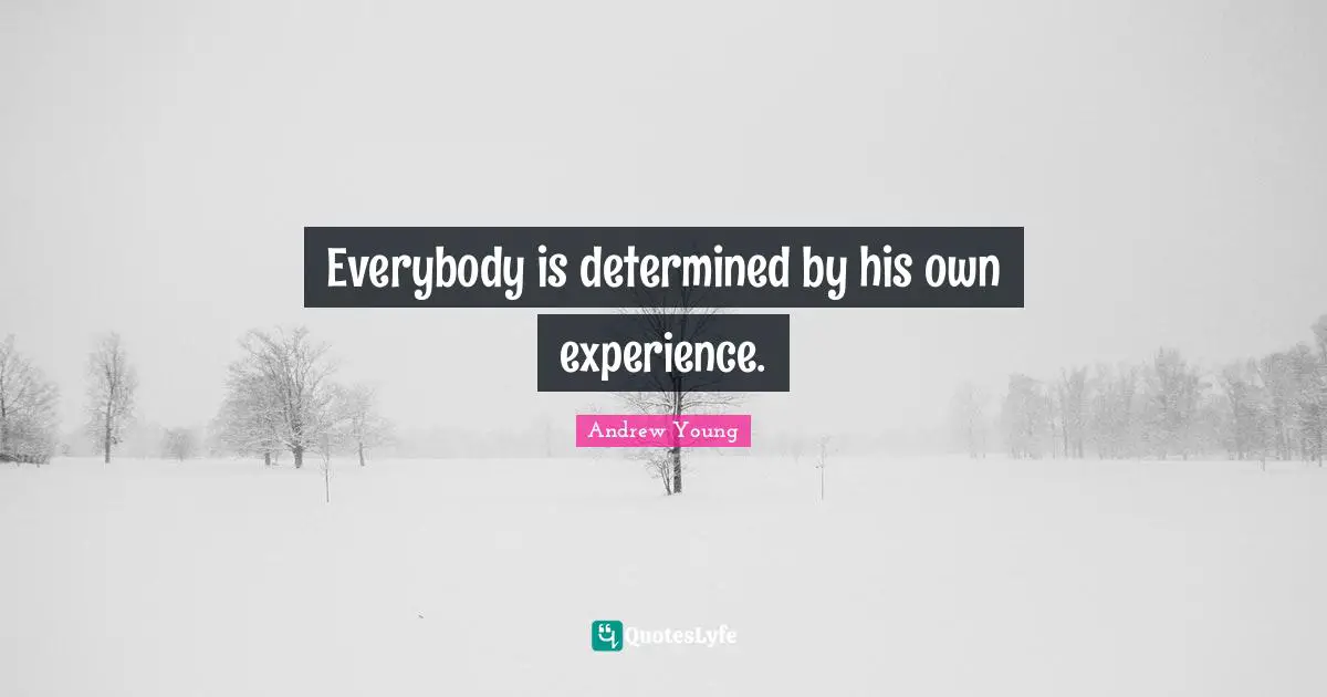 "Andrew Young Quotes." Quoteslyfe.com, 2025. Wed. 24 Dec. 2025. <https://www.quoteslyfe.com/quote/Everybody-is-determined-by-his-own-experience-369519>.