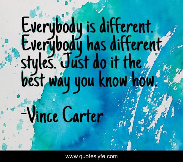 "Vince Carter Quotes." Quoteslyfe.com, 2025. Fri. 05 Dec. 2025. <https://www.quoteslyfe.com/quote/Everybody-is-different-Everybody-has-different-styles-303009>.