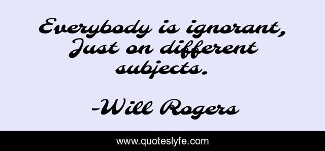 This page presents the quote "Everybody is ignorant, Just on different subjects.". Author of this quote is Will Rogers. This quote is about ignorance, wisdom,.