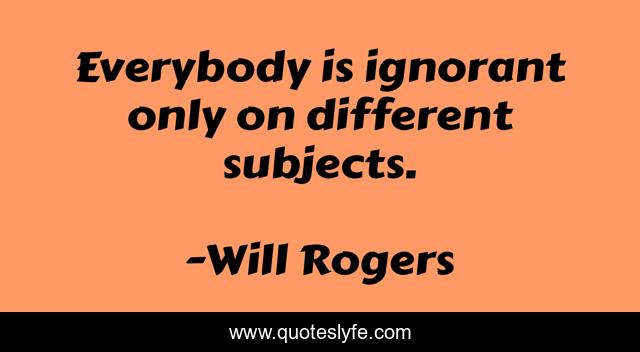 This page presents the quote "Everybody is ignorant only on different subjects.". Author of this quote is Will Rogers. .