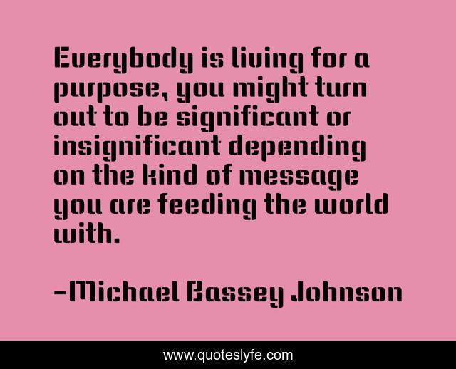 "Michael Bassey Johnson Quotes." Quoteslyfe.com, 2025. Sat. 06 Dec. 2025. <https://www.quoteslyfe.com/quote/Everybody-is-living-for-a-purpose-you-203317>.