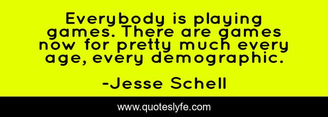 This page presents the quote "Everybody is playing games. There are games now for pretty much every age, every demographic.". Author of this quote is Jesse Schell. This quote is about now, games, pretty,.