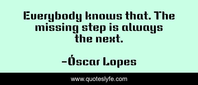 "Óscar Lopes Quotes." Quoteslyfe.com, 2025. Sat. 06 Dec. 2025. <https://www.quoteslyfe.com/quote/Everybody-knows-that-The-missing-step-is-45288>.