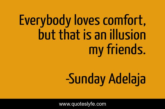 This page presents the quote "Everybody loves comfort, but that is an illusion my friends.". Author of this quote is Sunday Adelaja. This quote is about comfort, illusion,.