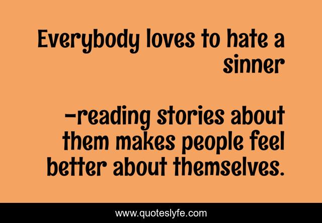 "reading stories about them makes people feel better about themselves. Quotes." Quoteslyfe.com, 2025. Sun. 07 Dec. 2025. <https://www.quoteslyfe.com/quote/Everybody-loves-to-hate-a-sinner-258474>.