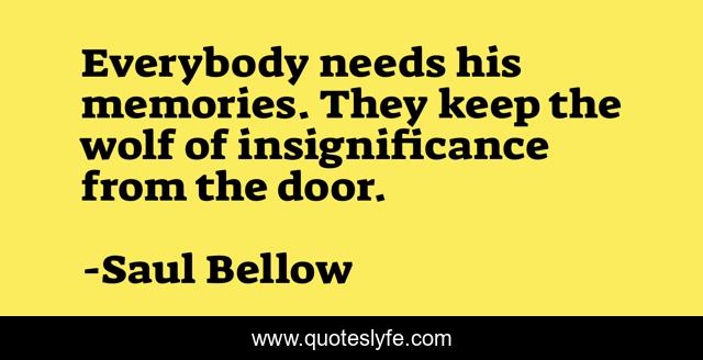 This page presents the quote "Everybody needs his memories. They keep the wolf of insignificance from the door.". Author of this quote is Saul Bellow. .