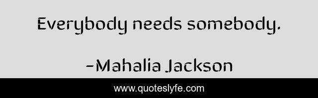 This page presents the quote "Everybody needs somebody.". Author of this quote is Mahalia Jackson. This quote is about everybody, needs, somebody,.