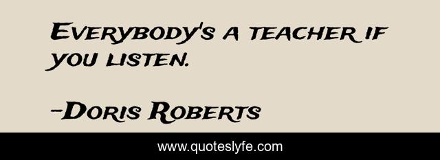 This page presents the quote "Everybody's a teacher if you listen.". Author of this quote is Doris Roberts. This quote is about everybody, listen,.