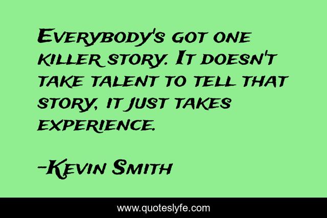 This page presents the quote "Everybody's got one killer story. It doesn't take talent to tell that story, it just takes experience.". Author of this quote is Kevin Smith. This quote is about story, talent, just,.