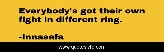This page presents the quote "Everybody's got their own fight in different ring.". Author of this quote is Innasafa. .