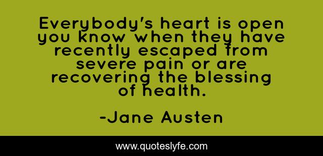 This page presents the quote "Everybody's heart is open you know when they have recently escaped from severe pain or are recovering the blessing of health.". Author of this quote is Jane Austen. .